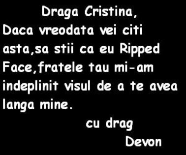 Cristina iesi cu Devon din cabana si incepura sa mearga prin padure,aceasta era ingrijorata pentru